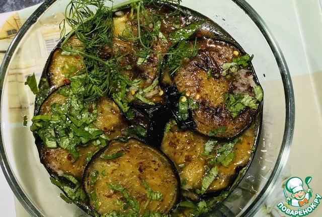 Баклажаны в чесночно-уксусном соусе с кинзой