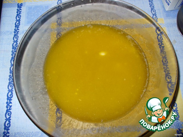 Дрожжи залить теплой водой, аккуратно размешать и дать постоять, пока делаем всё остальное. Сливочное масло смешать с сахарным песком, солью и растопить или на огне, или в микроволновке.