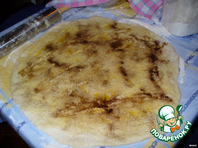 Потом посыпала сахарным песком (достаточно много), потом молотой корицей.