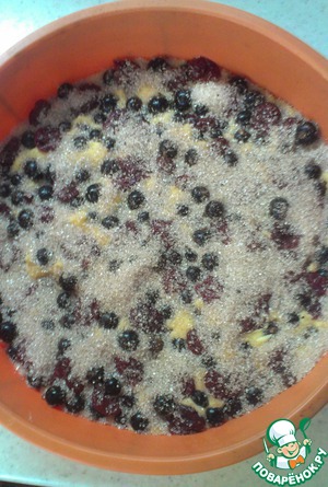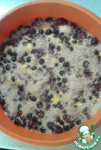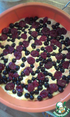 5. сверху выкладываем смородину и вишню, немного "утапливая" в тесте