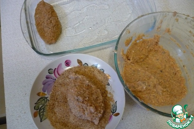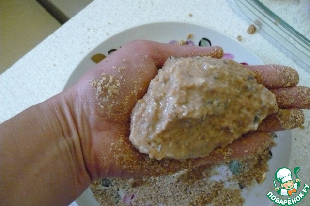 Теперь формируем котлетки и обваливаем их в сухарях.