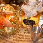 В миску налить масло. Размешать там мед, добавить уксус, натертый на мелкой терке чеснок и нарезанные душицу и укроп. Чили порезать колечками. Все перемешать и посолить на ваш вкус. Я специально не стала указывать количество соли, потому что кто-то любит посолонее, а кто-то - послаще. Кстати, количество меда и уксуса тоже можно подогнать под свой вкус.
