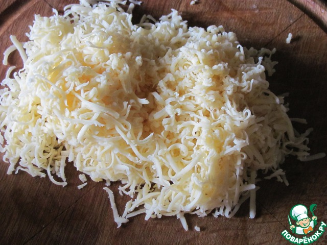 Сыр натереть на мелкой тёрке и тоже отправить в фарш.