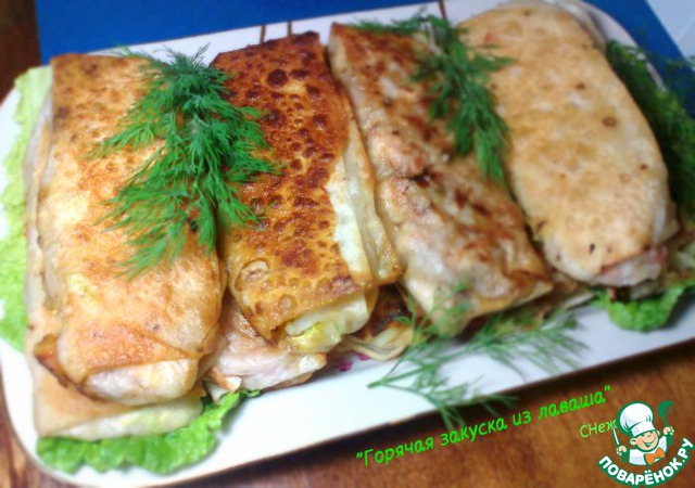 А вот теперь настало время наслаждаться закуской из лаваша, очень похожей по вкусу на чебуреки. Только она делается быстрее, и её очень удобно взять с собой на природу!