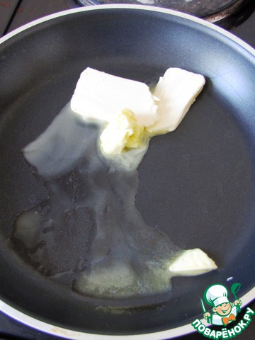 • В толстостенной сковороде или кастрюльке растапливаем сливочное масло.