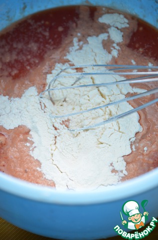 Смешайте теплый томатный сок с дрожжами, добавьте 1ст. л. растительного масла, сахар, соль