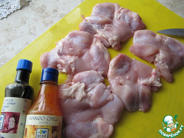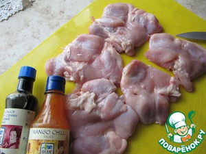 Ингредиенты для «Нежные стейки из куриных бедрышек в остро-сладком соусе»: