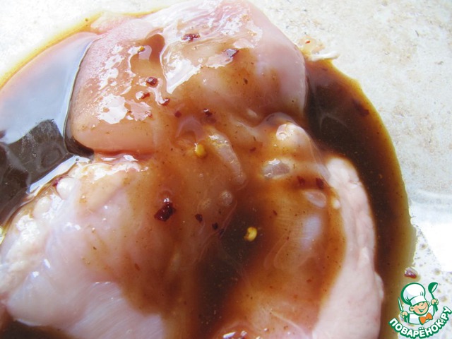Рецепт «Нежные стейки из куриных бедрышек в остро-сладком соусе»: