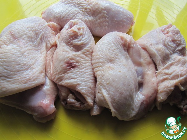 Охлажденные окорочка вымыть (если используем с косточкой - вытащить аккуратно ее!), высушить бумажным полотенцем.