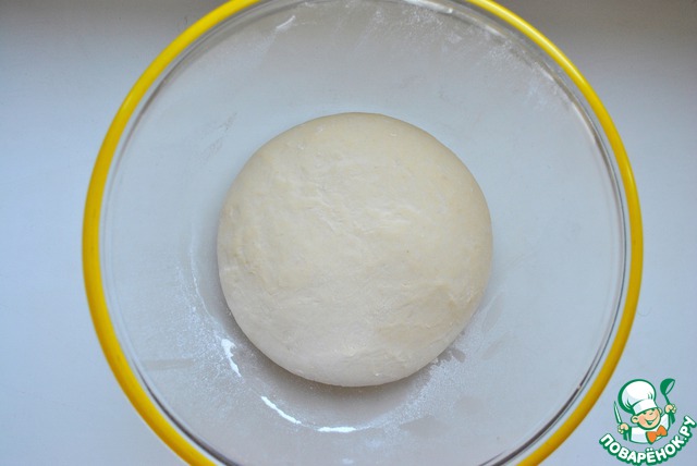 Тесто положить в присыпанную мукой миску и поставить в теплое место (например, на грелку) до подъема (около часа).