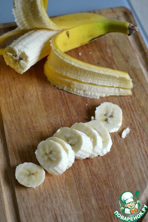 Готовим начинку. Бананы очистить и нарезать их кружочками.