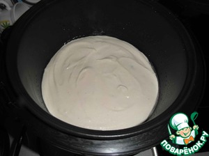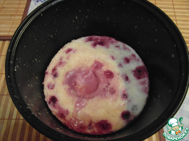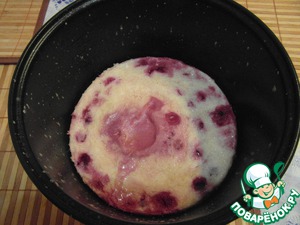 В тесто добавляем нарезанные фрукты (ягоды, изюм, цукаты). Мне очень нравится запеканка с клубникой, вишней или черной смородиной, но можно класть все, что Вам нравится. После этого тесто переливаем в предварительно смазанную маслом форму, ставим в мультиварку, устанавливаем режим "выпечка" на 1 час. -