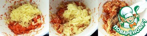 Картофель очистить и промыть. Три штуки натереть на крупной тёрке, остальные картофелины на мелкой. Добавить специи. Все перемешать. -