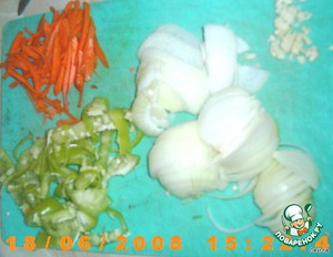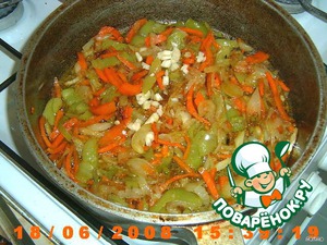 обжариваем поочередно: лук, морковь, перец, чеснок