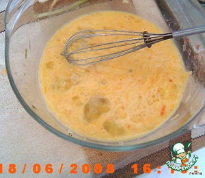 натрите сыр, налейте молоко, взбейте яйца, соль, хорошо перемешайте