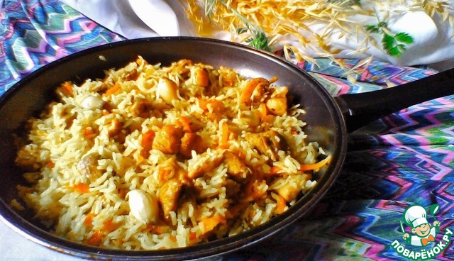 Мой фирменный рецепт плова в сковороде. Конечно, это не узбекский плов, с которым надо долго возиться, тем не менее, плов получается очень вкусный, рассыпчатый. Приготовление плова займет минимум времени, рецепт очень простой, нужно лишь соблюдать некоторые правила.