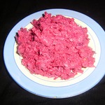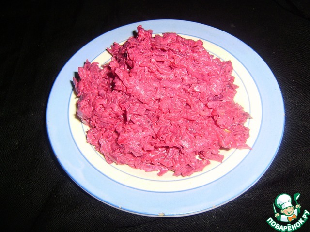 Свеклу заранее сварить, очистить и натереть на терке. -