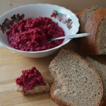 Все, что нам надо для приготовления салата - красная свекла, чеснок и майонез. Можно еще добавить грецкие орехи, они придают приятную нотку салату.