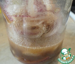 Заливаем примерно 5-ю ст. л. соевого соуса, перемешиваем и оставляем мариноваться минут на 30