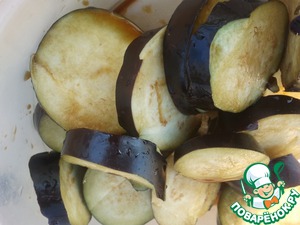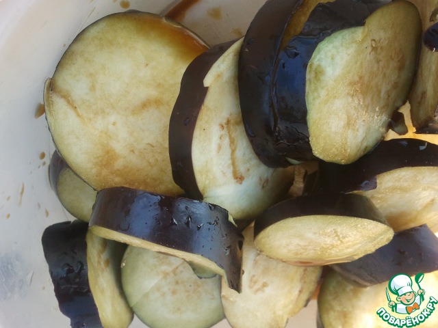 Баклажаны режем кружочками толщиной примерно в 1 см