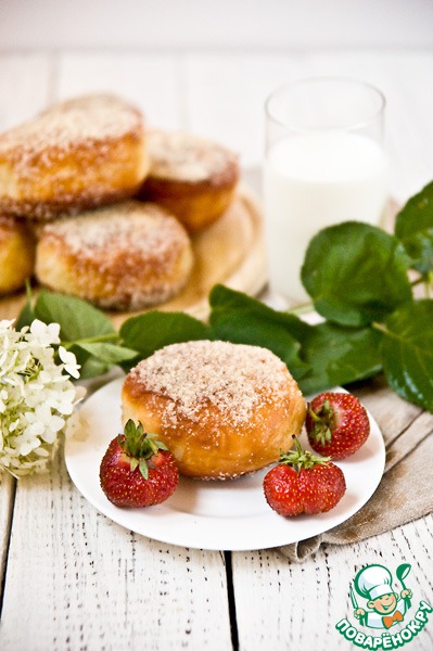 Шикарные пончики! смотрела передачу, там английские шефы делились секретами таких пончиков. Они жарили в духовке их. Потом мазали сливками жирными и толченой клубникой. Сказали, что самое главное, когда кольцом вырезаешь, кольцо не проворачивать по кругу и не крутить, иначе тесто слипнется и пончики плохо поднимутся)) фиг знает, но я бы сейчах хоть печеного, хоть жареного с удовольствием скушала))) а с такой начинкой то и вообще!