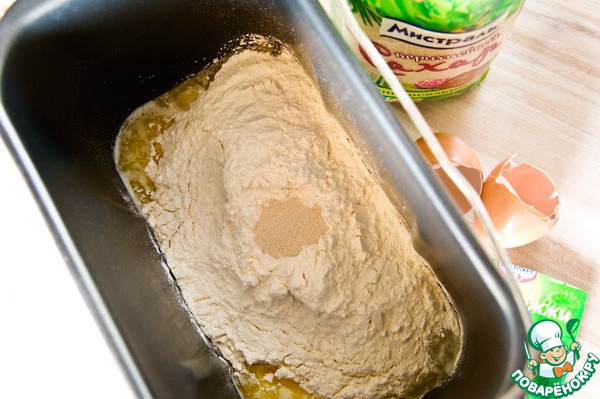 • Тесто я замешивала в хлебопечке. Тут все просто – следуя инструкции, выложить в чашу все ингредиенты для теста.