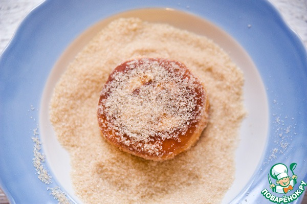 • Пончики обжарить в подсолнечном масле с обеих сторон. Готовый пончик выложить на бумажное полотенце, чтобы дать лишнему жиру впитаться.