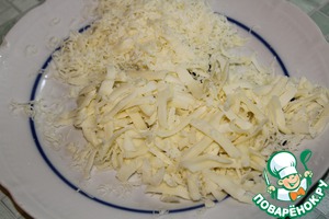 Ставлю картофель с чесноком вариться, а пока они варятся в подсоленной воде, моцареллу натираю на терке, предварительно подержав кусок сыра в морозилке минут 30. Я натерла половину куска сыра на средней терке, другую - на крупной. Глубинного смысла в этом нет, просто жара и кусочек стал таять у меня в руках.