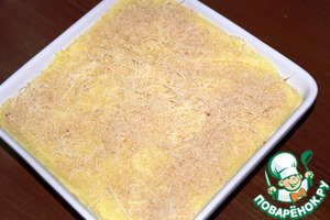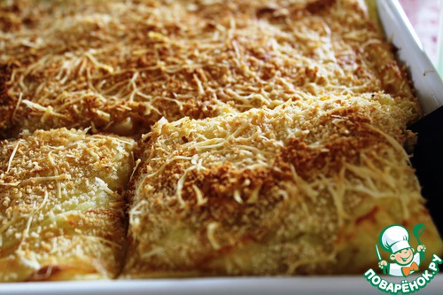 Присыпаю сверху смесью сыра с сухарями и отправляю в нагретую до 200*С духовку - запекаться до образования золотистой корочки.