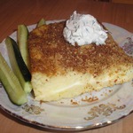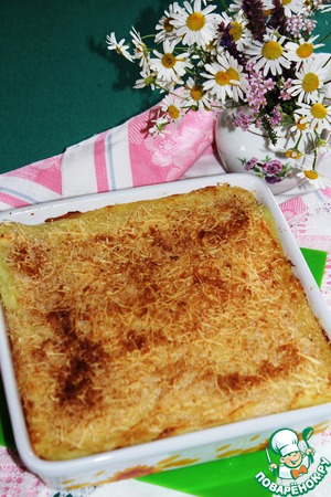 Под руки попал старый журнал "Кулинарный практикум", в котором, помимо множества интересных рецептов, были и рецепты блюд с сыром. Захотелось попробовать приготовить новый для меня вариант картофельного пюре, приготовила и не пожалела - вкусно. Можно подать в качестве гарнира к мясу, рыбе или попросту съесть кусочек этой "картофельной запеканочки", запивая холодным молочком. Готовится просто, выглядит нарядно. Рекомендую приготовить.
