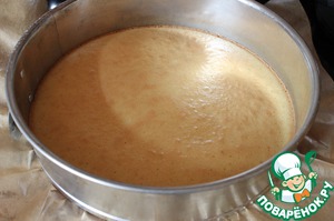 Добавила муку с разрыхлителем, все хорошо размешала и вылила в форму 24 см, застеленную бумагой.