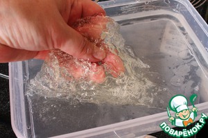 Желатин для крема подержим в холодной воде. Вот такой он у нас будет уже готовый.