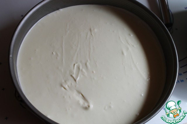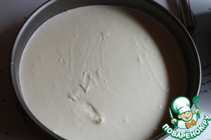 Выливаем половину творожного крема, ставим в морозилку на 10-15 минут