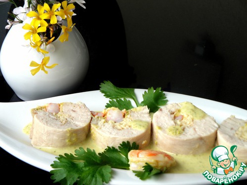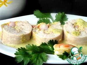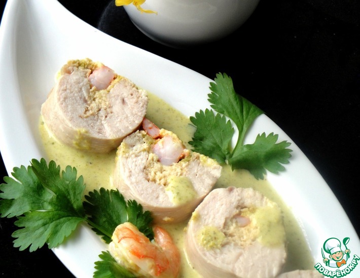 Очень нежная грудка, фаршированная креветками с фисташковым соусом.