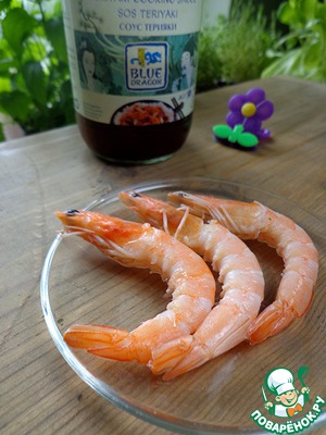 Креветки помыть, обсушить. Очистить, оставив голову и хвостик.