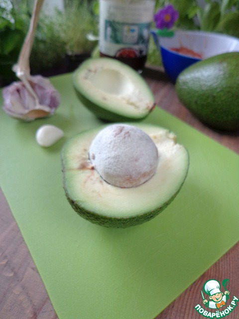 Авокадо разрезать пополам, удалить косточку, очистить от кожицы. Не удивляйтесь столь подробному описанию. Просто свой первый авокадо, который я измельчила вместе с кожурой, очень хорошо помню до сих пор))) Если вы купили твёрдый авокадо, положите его в пакет со спелым бананом или яблоком и уберите в тёмное место на денёк, он дозреет. -