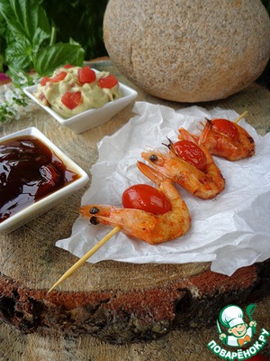 Рецепт «Креветки на шампурах с соусом из авокадо»:
