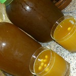 И отправляем на сутки в холодильник. За это время осядет осадок. Квас дозреет и приобретет резкость. Вообще в стеклянных банках выходит вкуснее, чем в пластике. Но на три банки не всегда найдется места в холодильнике.
