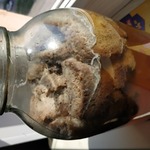 Снимаем верхние "целые" кусочки хлеба, складываем в литровую банку и отправляем в холодильник. Это закваска для следующей порции кваса.