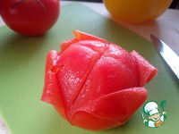 Помидоры ошпарить кипятком, снять кожицу и нарезать мелкими кубиками. |