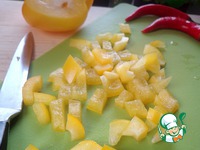 Или сразу нарезать тонкими полосками, добавить чили, лук и соевый соус, хорошо перемешать. И, пока мы занимаемся творчеством, мясо маринуется. |