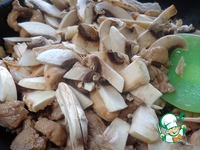 Добавляем шампиньоны. Готовим ещё 2 минуты. |