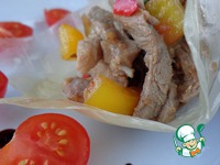 Рецепт "Свинина с соте из шампиньонов и овощей":