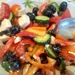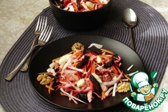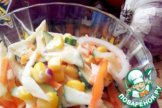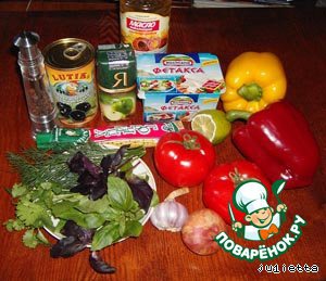 Допустимы некоторые изменения. Например, я не использовала зеленый салат, здесь заменила лимон винным уксусом, а яблочный сок - вином. Зато добавились огурцы. Используйте свою фантазию...
