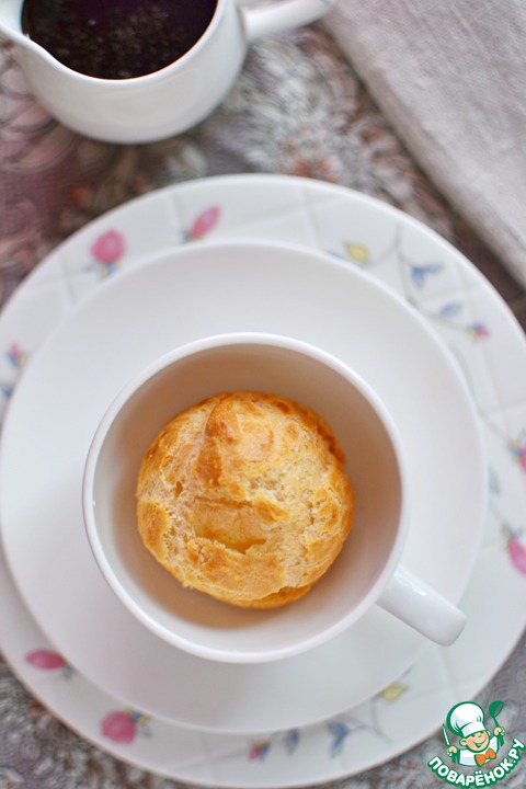Заварное тесто по сути своей довольно скучное. Без начинки ведь совсем неинтересное? Я тут попробовала интересный вариант, когда булочки начиняют взбитыми сливками и заливают крепким горячим кофе. Получается почти капучино с булочкой.