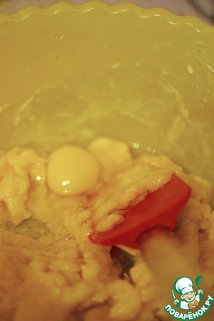 • Пока тесто достаточно горячее, вмешать по одному три яйца.