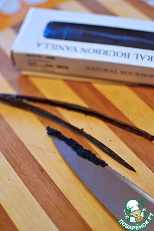 Стручок ванили разрезать вдоль пополам и выскоблить ножом семена. Не стоит заменять его ванилином в пакетиках или использовать готовый ванильный сахар. Иначе соус сильно потеряет во вкусе.
