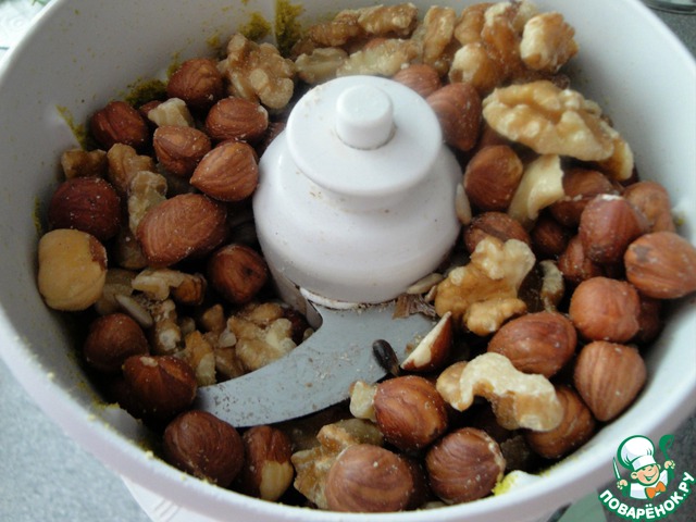 - Орехи ( у меня фундук и грецкие) — 200 г