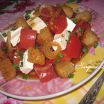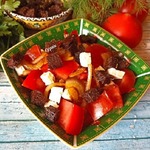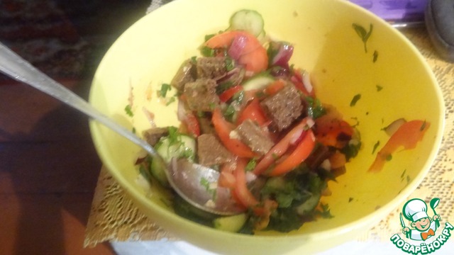Сочный, пикантный салат с ароматными гренками и оригинальной заправкой. Летний рецепт.