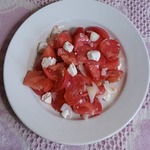 Я брала розовые помидоры. Нарезала прямо в салатник. -